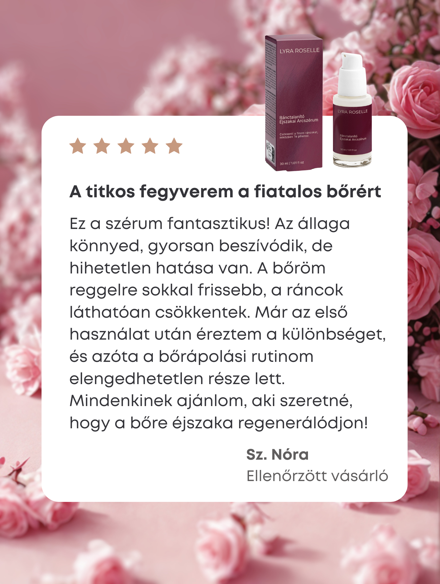 Ne halogasd tovább – csatlakozz a Lyra Roselle körhöz, és kezdd el a simább, feszesebb bőr esti rituáléját!